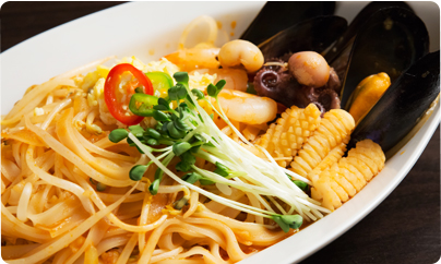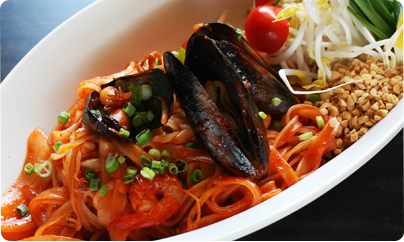 쌀국수와 각종해산물을 계란, 숙주와 함께 팟타이소스로 볶아낸 쌀국수